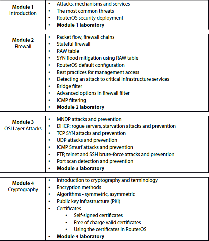 Questi gli argomenti che vengono trattati nel corso MTCNA: